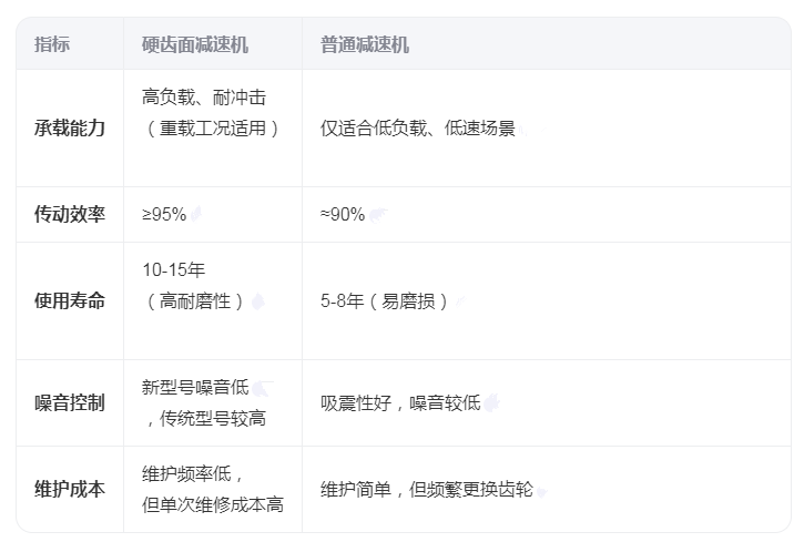 加工精度:硬齒面需精密磨齒工藝,普通減速機僅需滾齒/插齒。